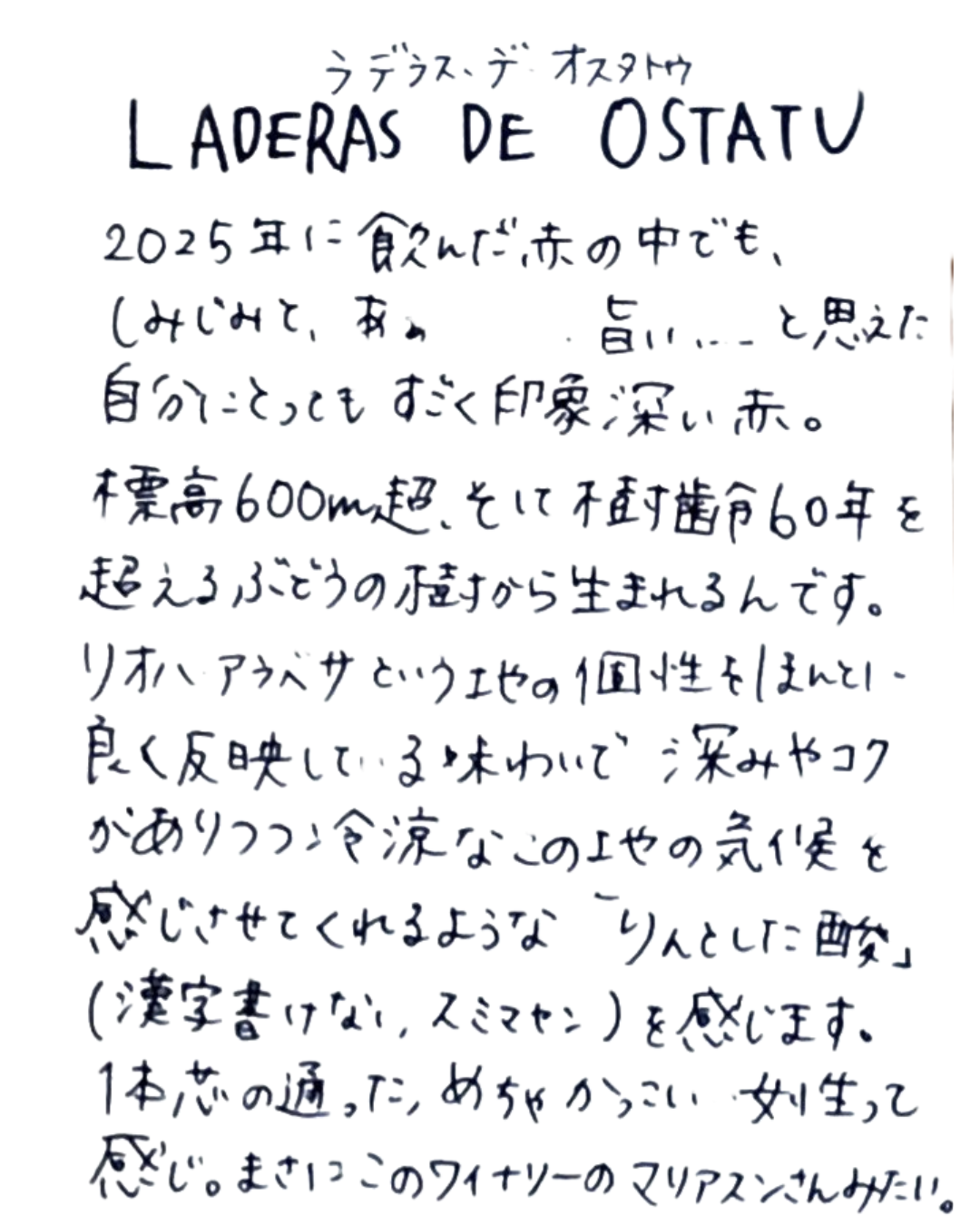 生産者/オスタトゥ 産地/リオハ・アラベサ ぶどう品種/テンプラニーリョ97% ビウラ3% 容量/750ml
