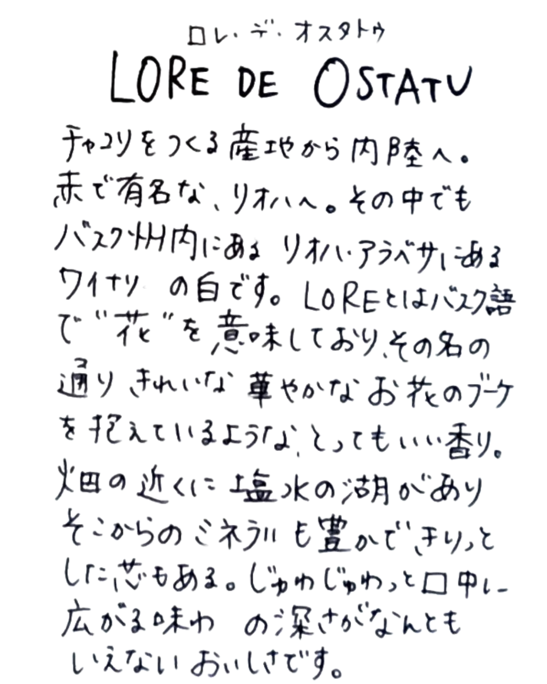 生産者/オスタトゥ 産地/リオハ・アラベサ ぶどう品種/ビウラ 50% マルヴァシア 50% 容量/750ml